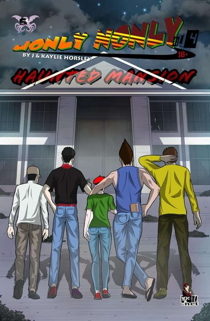 Join the gang – Jonly, K-Dizzle, Calvereena, Earf, and Jeffers – as they stumble into a giant, creepy mansion that definitely screams “y’all shouldn’t be here”. As with most things in the Nonly-Verse, this isn’t your typical haunted house story. The moment they step inside, they’re thrust into a chaotic whirlwind of zombie rats, spooky shadow figures, talking plants, demonic children and sexy succubusses (to Calvereena’s delight).