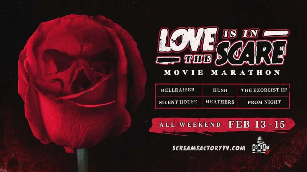 This Valentine’s Weekend on Scream Factory TV, it’s a non‑stop movie marathon of heart‑stopping horror classics. The Exorcist III, Hush, Hellraiser… it’s time to fall in love with terror!